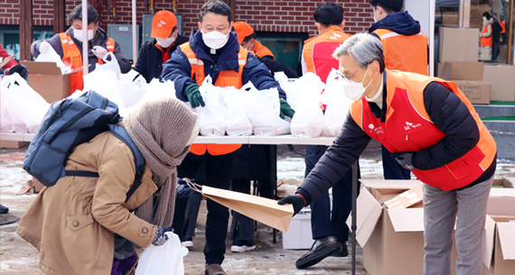 • SK이노베이션은 COVID-19 팬데믹 상황에서 사회적 공백으로 인해 끼니 해결 조차 쉽지 않은 취약계층과 매출 급감으로 생존 위기에 내몰린 영세 음식점을 함께 지원하는 ‘한끼 나눔 온(溫)택트 프로젝트’를 진행하였습니다. 사업장 지역을 중심으로 독거노인, 노숙인, 제주 고령해녀 등 결식 우려 취약계층 9백여 명에게 6만 2천여 끼를 제공하였으며, 명동밥집과 연계해 구성원 자원봉사를 지원하여 소상공인의 도시락을 노숙인에게 전달했습니다.